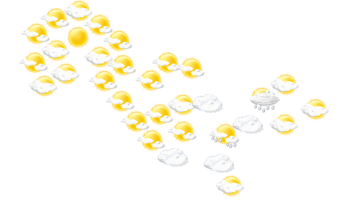 In Namangan ziehen tagsüber Wolkenfelder durch und die Temperaturen liegen zwischen 16 und 21°C. In der Nacht kommt es immer mal wieder zu Regenschauern und die Temperatur sinkt auf 15°C.