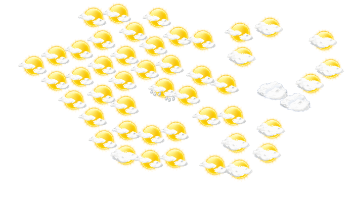 In Muborak Shahri gibt es tagsüber ungestörten Sonnenschein bei Werten von 15 bis zu 25°C. In der Nacht bilden sich leichte Wolken bei einer Temperatur von 16°C.