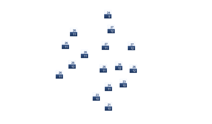 0 | 2 | 10 | 21 | 28 | 33 | 35 | 33 | 27 | 18 | 10 | 2 |
