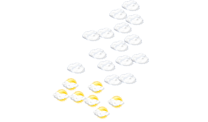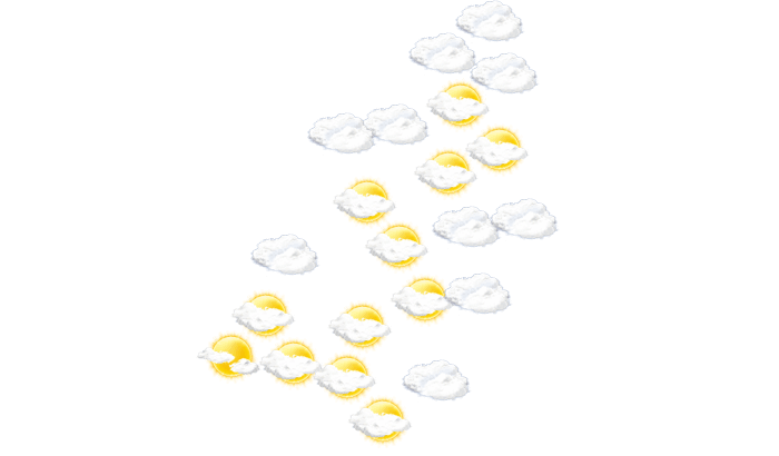 In Tol-Tugay ist am Tag der Himmel bedeckt, die Sonne ist nicht zu sehen bei Temperaturen von 14 bis 19°C. In der Nacht ziehen Wolkenfelder durch bei Tiefstwerten von 14°C.