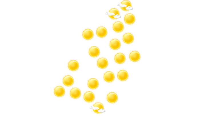 In Tol-Tugay überwiegt morgens dichte Bewölkung aber es bleibt trocken bei Temperaturen von 17°C. Im weiteren Verlauf des Tages stören vom Nachmittag bis abends nur einzelne Wolken den sonst blauen Himmel bei Werten von 20 bis zu 25°C. In der Nacht sind Teile des Himmels mit Wolken bedeckt bei Tiefsttemperaturen von 18°C.