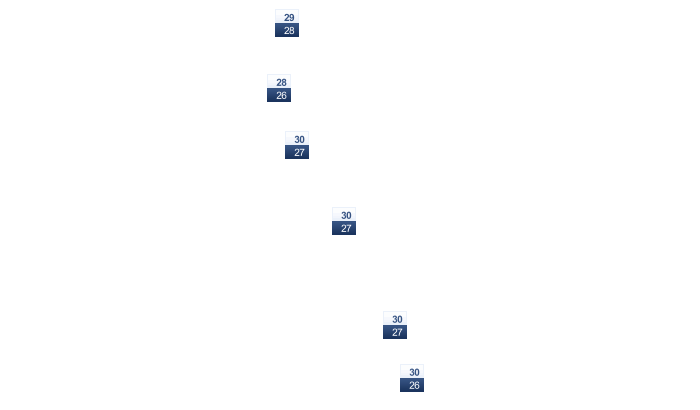 In Port-Olry gibt es tagsüber ungestörten Sonnenschein und die Temperaturen liegen zwischen 27 und 29°C. In der Nacht gibt es einen wolkenlosen Himmel bei Tiefstwerten von 27°C.