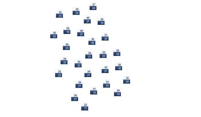 21 | 21 | 22 | 23 | 24 | 23 | 23 | 23 | 23 | 23 | 22 | 21 |