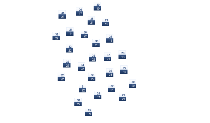 | 21 | 21 | 22 | 23 | 24 | 23 | 23 | 23 | 23 | 23 | 22 | 21 |