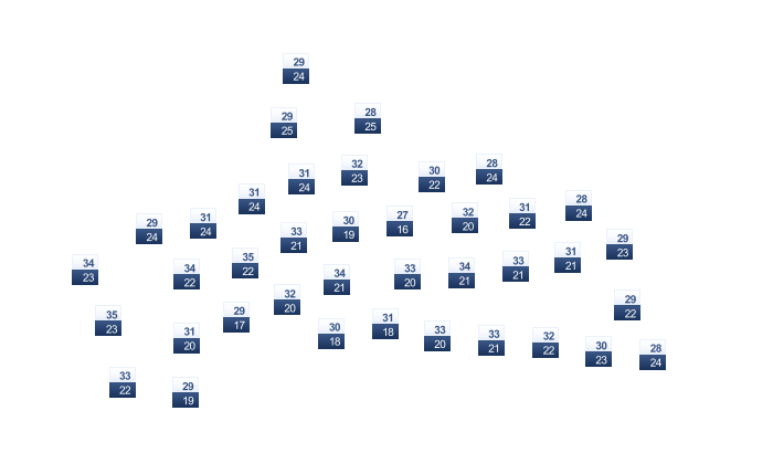 | 21 | 21 | 22 | 23 | 24 | 23 | 23 | 23 | 23 | 23 | 22 | 21 |