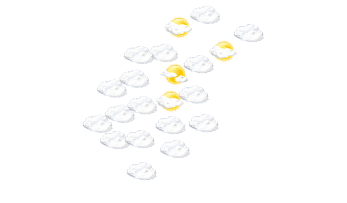 In Mérida bilden sich von morgens bis zum Nachmittag vereinzelt Wolken bei Werten von 15 bis zu 24°C. Am Abend ist es in Mérida vielfach wolkig bei Temperaturen von 16 bis 19°C. Nachts ist es wolkig bei einer Temperatur von 16°C.