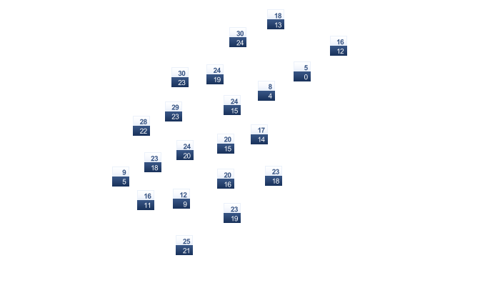 | 21 | 21 | 22 | 23 | 24 | 23 | 23 | 23 | 23 | 23 | 22 | 21 |