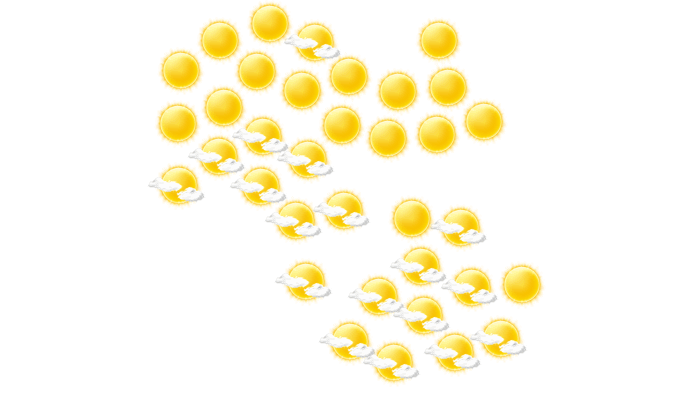 In Punta de Mata ziehen am Morgen Wolkenfelder durch bei Werten von 19°C. Darüber hinaus bilden sich am Nachmittag und am Abend leichte Wolken und die Temperaturen liegen zwischen 22 und 34 Grad. In der Nacht ist es überwiegend klar mit vereinzelten Wolken bei einer Temperatur von 20°C.
