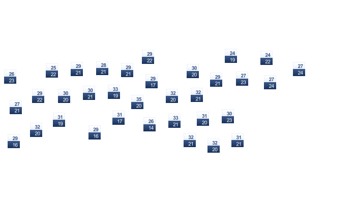 | 21 | 21 | 22 | 23 | 24 | 23 | 23 | 23 | 23 | 23 | 22 | 21 |