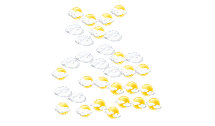 In Táriba gibt es am Tag nur selten Lücken in der Wolkendecke bei Temperaturen von 19 bis 28°C. Nachts sind Teile des Himmels mit Wolken bedeckt bei Tiefstwerten von 20°C.