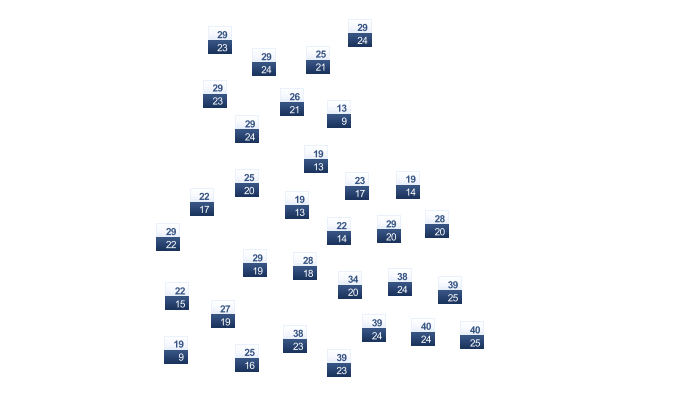 | 21 | 21 | 22 | 23 | 24 | 23 | 23 | 23 | 23 | 23 | 22 | 21 |
