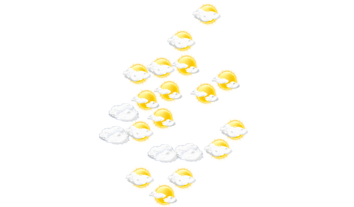 In Cabimas kommt es am Morgen zu einem Mix aus Sonne und Wolken bei Werten von 25°C. Darüber hinaus wird mittags und auch abends die Sonne von einzelnen Wolken verdeckt bei Werten von 26 bis zu 30°C. In der Nacht gibt es lockere Bewölkung bei Werten von 25°C.