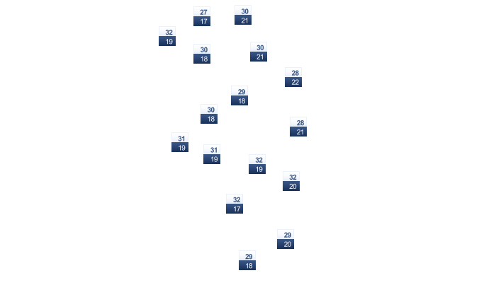 In Dibba Al-Hisn ist es am Tag sonnig bei Temperaturen von 21 bis 30°C. Nachts ist es klar und die Temperatur sinkt auf 19°C.