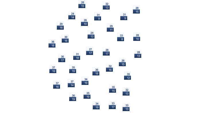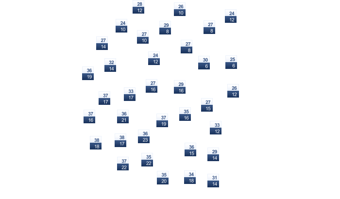 | 8 | 11 | 15 | 21 | 27 | 32 | 33 | 32 | 29 | 22 | 14 | 9 |