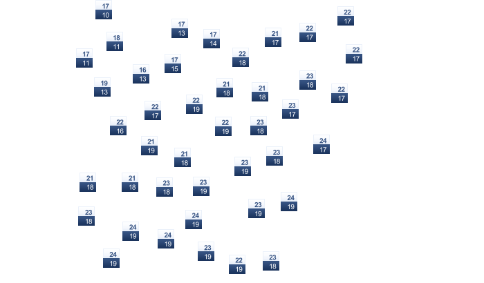 | 8 | 11 | 15 | 21 | 27 | 32 | 33 | 32 | 29 | 22 | 14 | 9 |