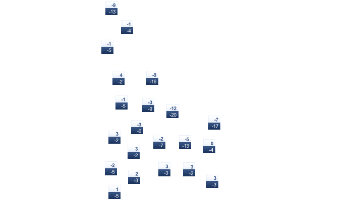 | -5 | -3 | 0 | 5 | 10 | 15 | 18 | 17 | 14 | 7 | 0 | -4 |