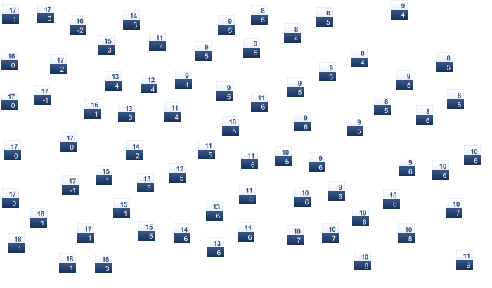 | 8 | 11 | 15 | 21 | 27 | 32 | 33 | 32 | 29 | 22 | 14 | 9 |