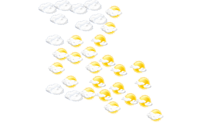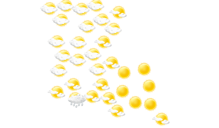 In New Orleans ist es am Morgen bewölkt, die Sonne zeigt sich nur vereinzelt bei Werten von 23°C. Mittags wird die Sonne von einzelnen Wolken verdeckt und die Temperatur erreicht 31°C. Am Abend gibt es in New Orleans keine Wolken bei Temperaturen von 24 bis 28°C. In der Nacht ziehen Wolkenfelder durch und die Luft kühlt sich auf 21°C ab. Böen können Geschwindigkeiten zwischen 18 und 25 km/h erreichen.