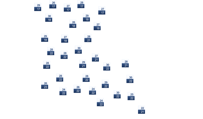 | 8 | 11 | 15 | 21 | 27 | 32 | 33 | 32 | 29 | 22 | 14 | 9 |