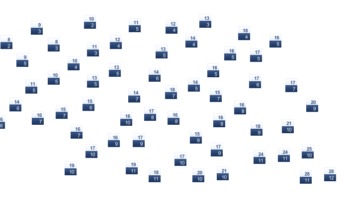 | 8 | 11 | 15 | 21 | 27 | 32 | 33 | 32 | 29 | 22 | 14 | 9 |