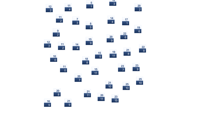 | 8 | 11 | 15 | 21 | 27 | 32 | 33 | 32 | 29 | 22 | 14 | 9 |