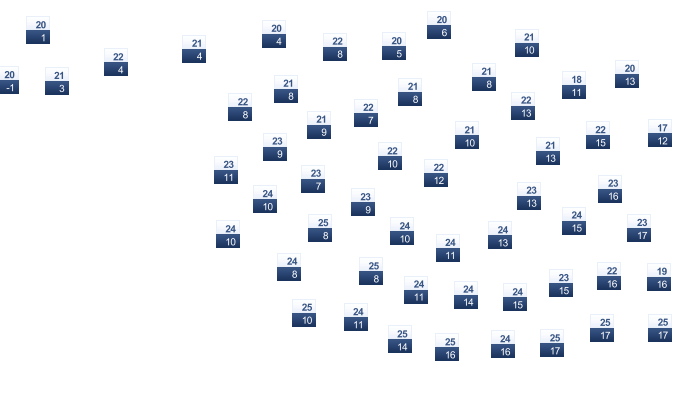 | 8 | 11 | 15 | 21 | 27 | 32 | 33 | 32 | 29 | 22 | 14 | 9 |