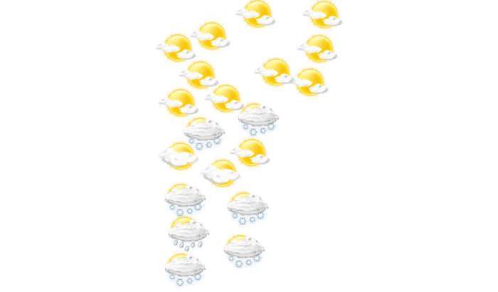 In Montpelier gibt es am Morgen keine Wolken, die Sonne scheint und die Temperatur liegt bei -9°C. Im Laufe des Mittags bleibt die Wolkendecke geschlossen und die Temperatur erreicht 4°C. Abends fällt in Montpelier Schnee und die Temperatur liegt bei -9°C. In der Nacht ziehen Wolkenfelder durch bei einer Temperatur von -5°C. Mit Böen zwischen 5 und 33 km/h ist zu rechnen.