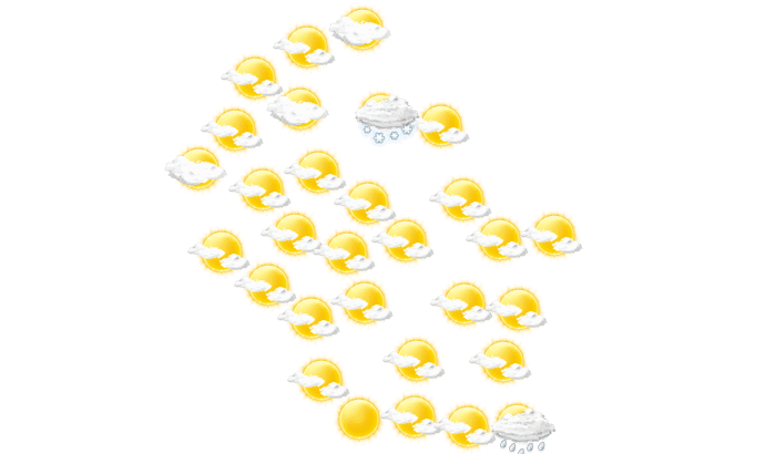 In Madison wird tagsüber die Sonne von einzelnen Wolken verdeckt bei Werten von -3 bis zu 0°C. In der Nacht gibt es keine Wolken und die Sterne sind klar zu erkennen bei Tiefsttemperaturen von -3°C. Mit Geschwindigkeiten von 30 bis 31 km/h weht der Wind aus nordwestlicher Richtung. Mit Böen zwischen 45 und 50 km/h ist zu rechnen.