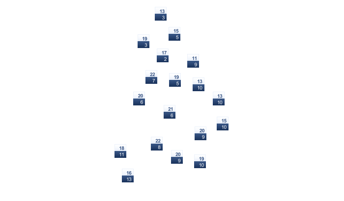 | 8 | 8 | 10 | 14 | 17 | 20 | 22 | 22 | 19 | 15 | 11 | 9 |