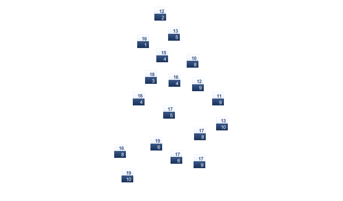 | 2 | 3 | 4 | 6 | 9 | 12 | 14 | 14 | 12 | 9 | 6 | 5 |