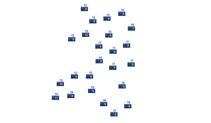 | 8 | 8 | 10 | 14 | 17 | 20 | 22 | 22 | 19 | 15 | 11 | 9 |