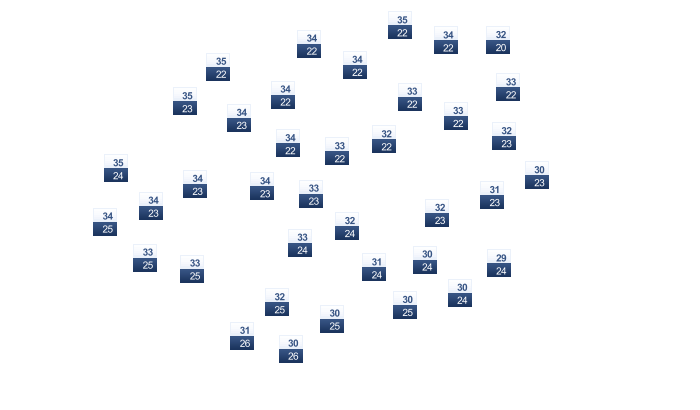 | 24 | 26 | 27 | 30 | 33 | 34 | 34 | 34 | 31 | 28 | 27 | 25 |