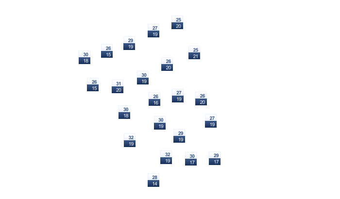 | 24 | 26 | 27 | 30 | 33 | 34 | 34 | 34 | 31 | 28 | 27 | 25 |
