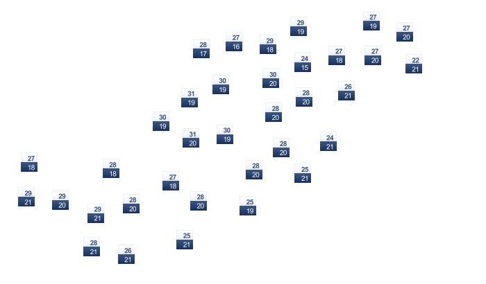 | 24 | 26 | 27 | 30 | 33 | 34 | 34 | 34 | 31 | 28 | 27 | 25 |