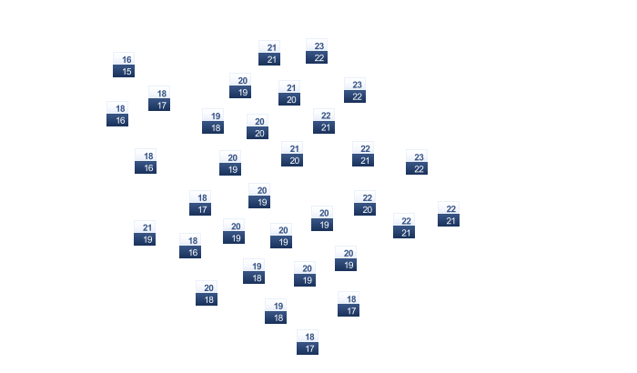 | 19 | 20 | 21 | 23 | 24 | 25 | 25 | 25 | 24 | 23 | 22 | 20 |