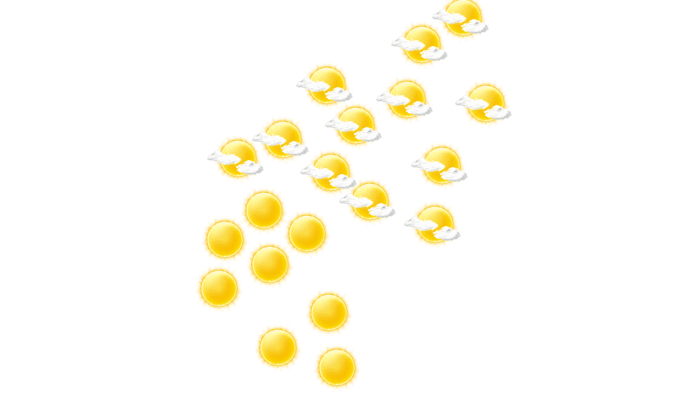 In Bù Đốp kommt es den ganzen Tag zu einem Mix aus Sonne und Wolken bei Werten von 18 bis zu 34°C. In der Nacht ist es leicht bewölkt und die Temperatur sinkt auf 17°C.
