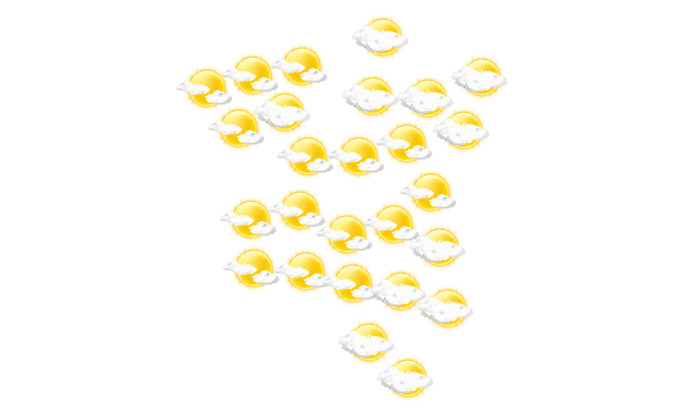 In Tân Châu zeigt sich den ganzen Tag die Sonne nur vereinzelt bei sonst wolkigem Himmel bei Temperaturen von 19 bis 30°C. In der Nacht sind Teile des Himmels mit Wolken bedeckt bei einer Temperatur von 23°C.