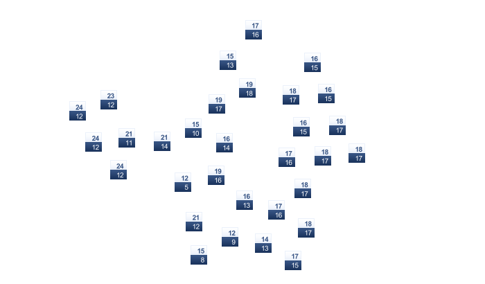 | 24 | 26 | 27 | 30 | 33 | 34 | 34 | 34 | 31 | 28 | 27 | 25 |