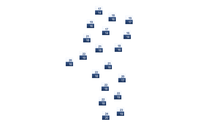 | 19 | 20 | 21 | 23 | 24 | 25 | 25 | 25 | 24 | 23 | 22 | 20 |