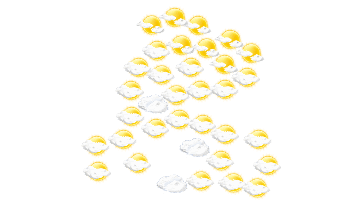 In Mobaye bleibt von morgens bis zum Nachmittag die Wolkendecke geschlossen bei Werten von 22 bis zu 35°C. Abends ziehen in Mobaye Wolkenfelder durch und die Temperaturen liegen zwischen 24 und 25 Grad. Nachts ist es wolkig bei einer Temperatur von 23°C.