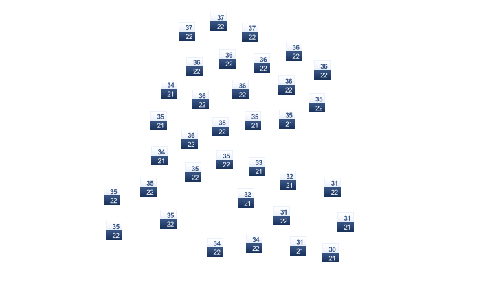 | 19 | 20 | 21 | 21 | 20 | 20 | 20 | 19 | 19 | 19 | 19 | 18 |