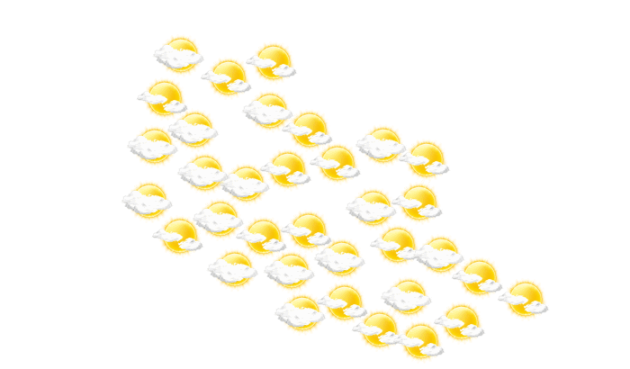 In Boda stören von Tagesbeginn bis zum Nachmittag nur einzelne Wolken den sonst blauen Himmel bei Temperaturen von 23 bis 38°C. Am Abend gibt es in Boda nur selten Lücken in der Wolkendecke bei Werten von 26 bis zu 31°C. Nachts bilden sich leichte Wolken bei Werten von 23°C.