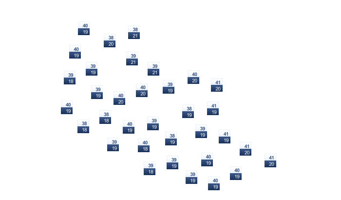 | 19 | 20 | 21 | 21 | 20 | 20 | 20 | 19 | 19 | 19 | 19 | 18 |