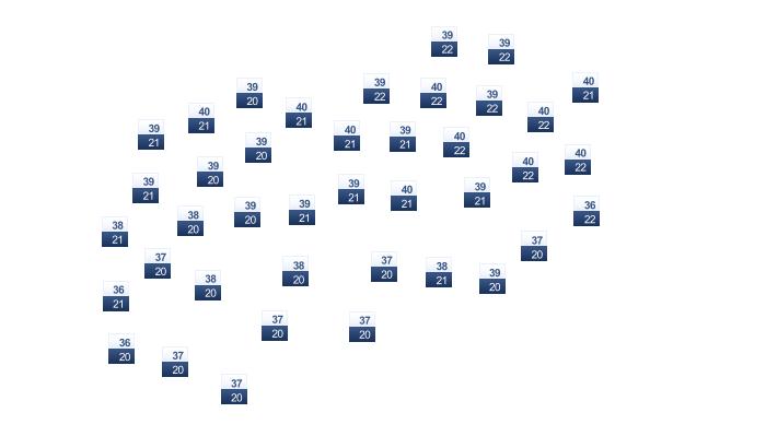 | 19 | 20 | 21 | 21 | 20 | 20 | 20 | 19 | 19 | 19 | 19 | 18 |