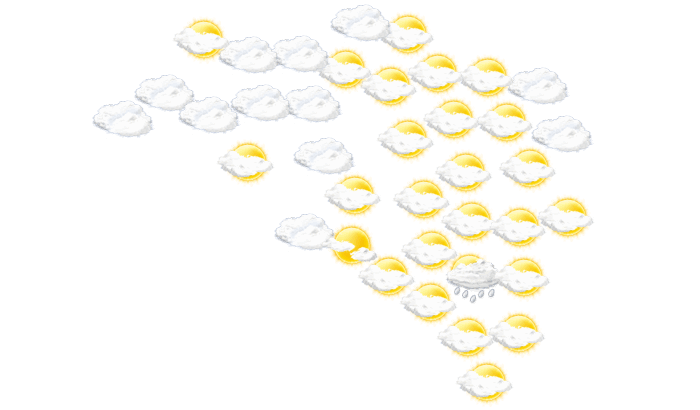 In Bimbo ist es morgens bewölkt, die Sonne zeigt sich nur vereinzelt bei Temperaturen von 22°C. Darüber hinaus bleibt am Nachmittag und am Abend die Wolkendecke geschlossen und die Temperaturen liegen zwischen 25 und 39 Grad. Nachts gibt es nur selten Lücken in der Wolkendecke bei Tiefsttemperaturen von 23°C.