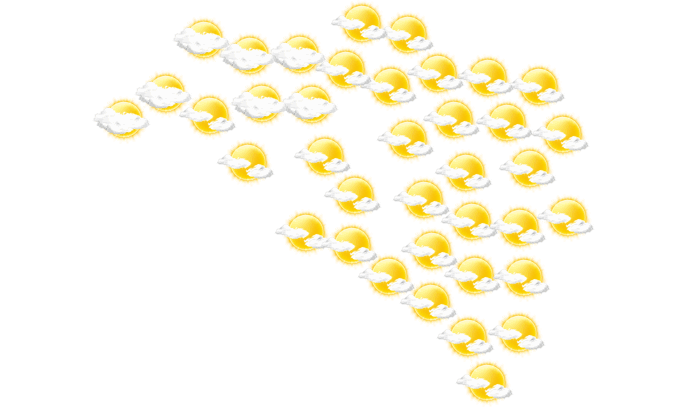 In Bimbo gibt es morgens eine Mischung aus Sonne und Wolken bei Temperaturen von 23°C. Im weiteren Tagesverlauf ist es vom Nachmittag bis abends bewölkt und die Temperaturen liegen zwischen 25 und 39 Grad. In der Nacht regnet es und das Thermometer fällt auf 21°C.