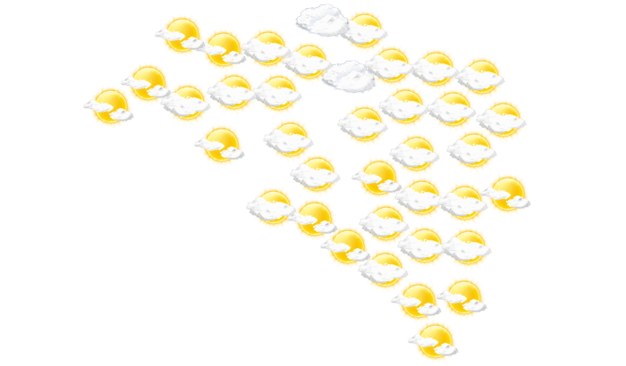 In Bimbo überwiegt morgens dichte Bewölkung aber es bleibt trocken bei Temperaturen von 21°C. Gegen später strahlt die Sonne und die Temperaturen erreichen 32°C. Am Abend bilden sich in Bimbo leichte Wolken bei Temperaturen von 23 bis 24°C. In der Nacht ist es überwiegend klar mit vereinzelten Wolken bei Tiefsttemperaturen von 21°C.