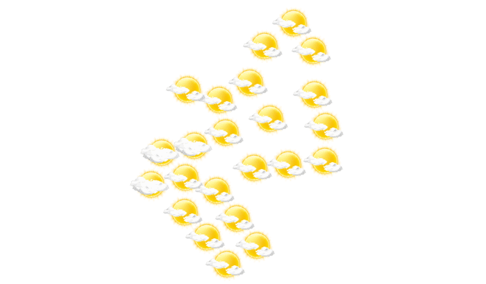 In Oumba gibt es morgens strahlenden Sonnenschein und die Temperatur liegt bei 25°C. Später gibt es mehr Wolken als Sonne und die Temperatur erreicht 40°C. Abends ist es in Oumba bedeckt bei Werten von 31 bis zu 32°C. In der Nacht ist ein Blick auf die Sterne nur vereinzelt bei sonst wolkigem Himmel möglich bei Tiefsttemperaturen von 25°C.