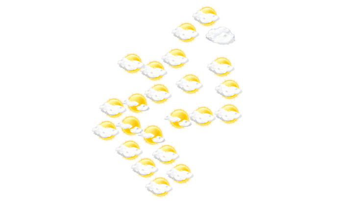 In Ippy gibt es morgens eine Mischung aus Sonne und Wolken und die Temperatur liegt bei 25°C. Im weiteren Tagesverlauf kann sich am Nachmittag und am Abend die Sonne nicht durchsetzen und es bleibt bedeckt bei Werten von 28 bis zu 37°C. Nachts ist es wolkig bei Tiefstwerten von 25°C.