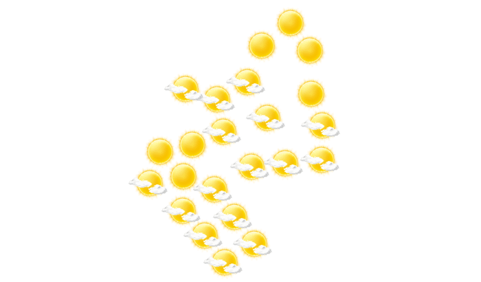 In Oumba ist es am Morgen überwiegend dicht bewölkt bei Werten von 22°C. Des Weiteren gibt es mittags und auch abends keine Wolken, die Sonne scheint bei Werten von 26 bis zu 39°C. Nachts bedecken einzelne Wolken den Himmel und das Thermometer fällt auf 21°C.